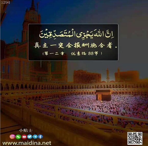 [15]敬畏的人们必定在许多乐园中,在许多泉源畔,[16]接受他们的主所赏赐的。 他们在生前确是行善的,[17]他们在夜间只稍稍睡一下,[18]他们在黎明时向主求饶, (第五一章 播种者(达理雅特) 15 到18节) “Contact Links” YouTube https://youtube.com/channel/UCYz3e0kw4KUZLKJk0SRyMTw Twitter link https://twitter.com/xiaotieshishi 脸书的链接 https://www.facebook.com/xiaotieshi/ 加入WhatsApp群4 https://chat.whatsapp.com/IJNu5omeMdgHhJlEZKYx7k Telegram link 继续阅读