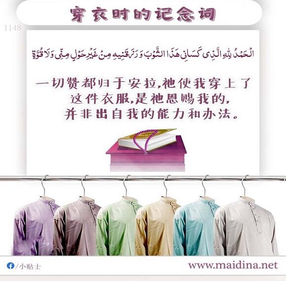 穿衣时的祈祷词一切赞颂归于安拉,祂使我穿上了这件衣服,是祂恩赐我的,并非出自我的能力和办法。 “Contact Links” YouTube https://youtube.com/channel/UCYz3e0kw4KUZLKJk0SRyMTw Twitter link https://twitter.com/xiaotieshishi 脸书的链接 https://www.facebook.com/xiaotieshi/ 加入WhatsApp群4 https://chat.whatsapp.com/IJNu5omeMdgHhJlEZKYx7k Telegram link https://t.me/joinchat/AAAAAFSVIoyZhlQKBCS8ng instagram link 继续阅读