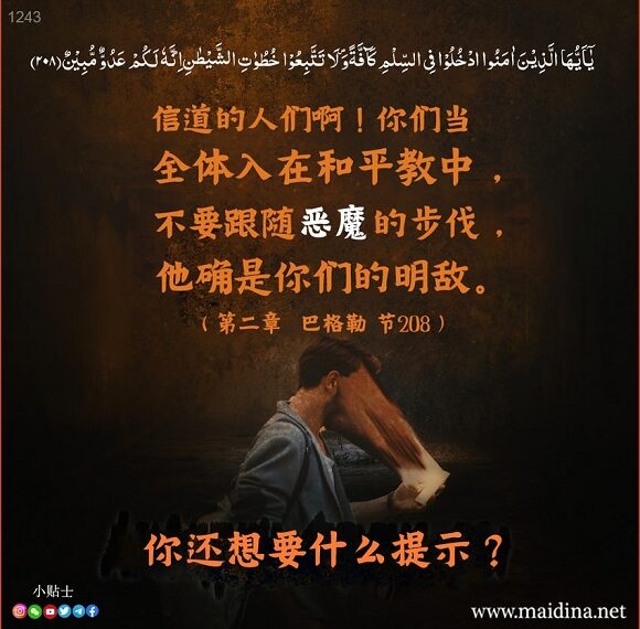 信道的人们啊!你们当全体入在和平教中,不要跟随恶魔的步伐,他确是你们的明敌。(第二章 巴格勒 节172) “Contact Links” YouTube https://youtube.com/channel/UCYz3e0kw4KUZLKJk0SRyMTw Twitter link https://twitter.com/xiaotieshishi 脸书的链接 https://www.facebook.com/xiaotieshi/ 加入WhatsApp群4 https://chat.whatsapp.com/IJNu5omeMdgHhJlEZKYx7k Telegram link https://t.me/joinchat/AAAAAFSVIoyZhlQKBCS8ng instagram link 继续阅读