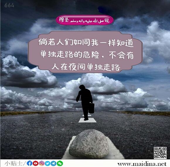 倘若人们如同我一样知道单独走路的危险,不会有人在夜间单独走路。(布哈里圣训实录,第2册,2998,段哈迪斯) Tǎngruò rénmen rútóng wǒ yīyàng zhīdào dāndú zǒulù de wéixiǎn, bù huì yǒu rén zài yèjiān dāndú zǒulù.(Bù hālǐ shèng xùn shílù, dì 2 cè,2998, duàn hā dí sī) 664 “Contact Links”YouTubehttps://youtube.com/channel/UCYz3e0kw4KUZLKJk0SRyMTwTwitter 继续阅读