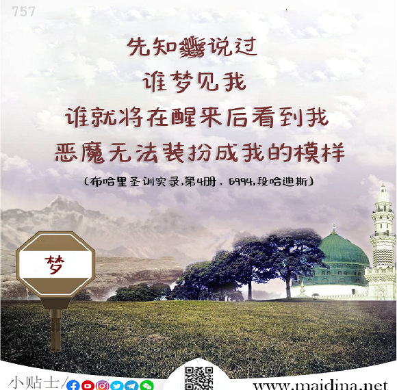 穆圣ﷺ说过: 谁梦见我,谁就将在醒来后看到我,恶魔无法装扮成我的模样。(布哈里圣训实录,第4册,6994,段哈迪斯) Mù shèngṣly̱ạllhʿlyhwslm shuōguò: Shéi mèng jiàn wǒ, shéi jiù jiàng zài xǐng lái hòu kàn dào wǒ, èmó wúfǎ zhuāngbàn chéng wǒ de múyàng.(Bù hālǐ shèng xùn shílù, dì 4 cè,6994, duàn hā dí sī) #古兰经 #读古兰经 #教古兰经 #学习古兰经 #学古兰经 #爱古兰经 #喜欢读古兰经 757 “Contact 继续阅读